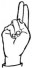 На ћирилици написано ИВА ДАНГУБИЋ састоји се из 11 слова [?]. Исписано ћириличном једноручном азбуком за глувонеме:
